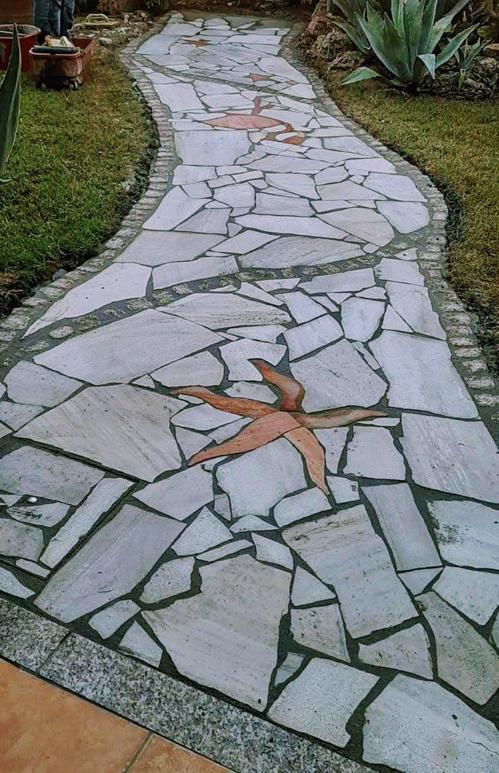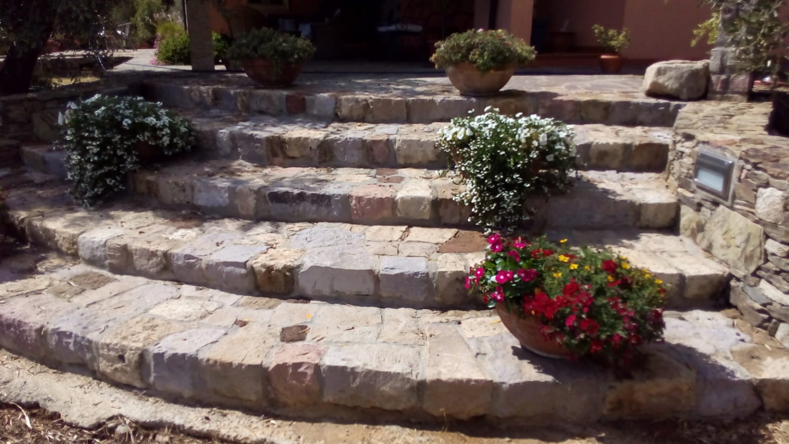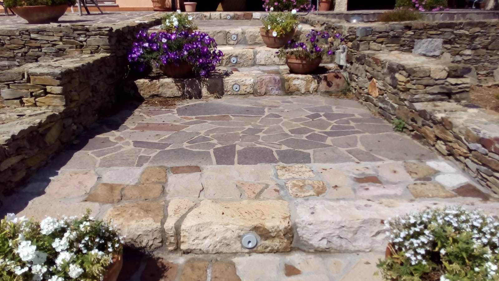 L’azienda si occupa anche della realizzazione di vialetti e pavimentazioni in pietra. La grande maestria nella lavorazione della pietra ci permette di eseguire lavorazioni fini e mosaici personalizzando al massimo i vostri spazi. Un fascino particolare hanno poi i gradoni o le vere e proprie scale in pietra che si armonizzano a pieno con l'ambiente ed in cui e possibile inserire luci per renderle visibili durante la notte e creare degli ambienti suggestivi in giardino.